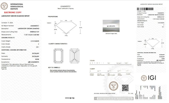 *Vigtig information: Laboratoriedyrkede diamanter, ofte betegnet som miljøvenlige diamanter, er diamanter produceret af forskere ved hjælp af teknologi, der genskaber de forhold, under hvilke diamanter gror og dannes dybt i jorden. En lab-dyrket diamant er kemisk, fysisk og optisk identisk med diamanter, der er dannet i jordens indre – den eneste faktor, der gør dem anderledes end en naturlig diamant, er, at de er groet i et laboratorium. Gro-processen tager op til 10 uger. Lab fremstillet diamanter er lige så forskellige og unikke, da man ikke kan kontrollere placering af fejl og indeslutninger, men kun sætte gro-processen i gang. Derfor klassificeres de også på samme måde som naturligt groet diamanter. Der kræves meget avanceret udstyr til at måle forskelle (indhold af nitrogen, fluorescens og fosforescens) mellem en diamant